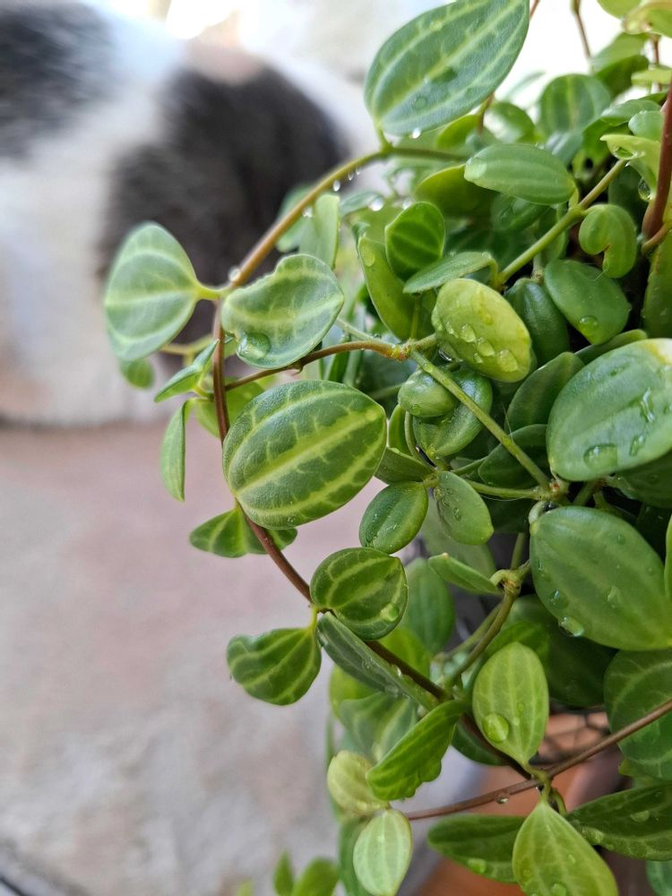 窓辺のホコリ(主に猫の毛)をかぶったペペロミアにシャワーで上から水をかけました🚿