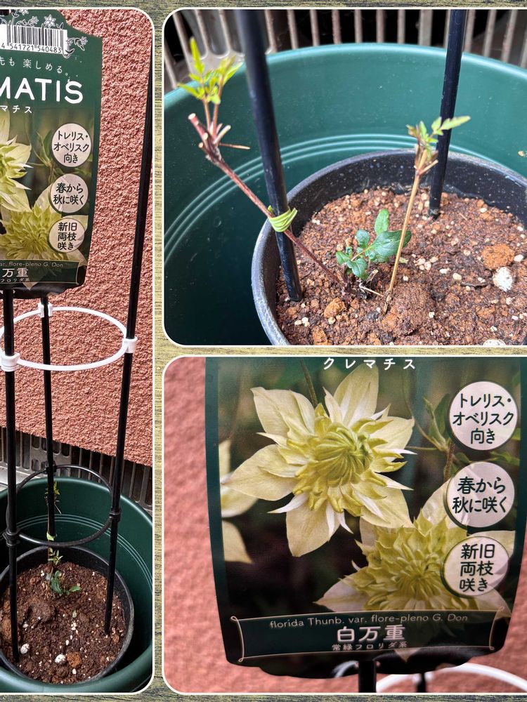 ホームセンター行くたびにクレマチス覗いて 無いな〜今日も無いな〜と白万重探ししながら たまーに違うの買ってしまったりし🤭やっとゲットです♪