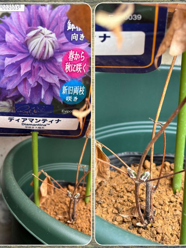 ❹新芽🌱発見👀クレマチスディアマンティナ咲いたら豪華なお花になりそうです