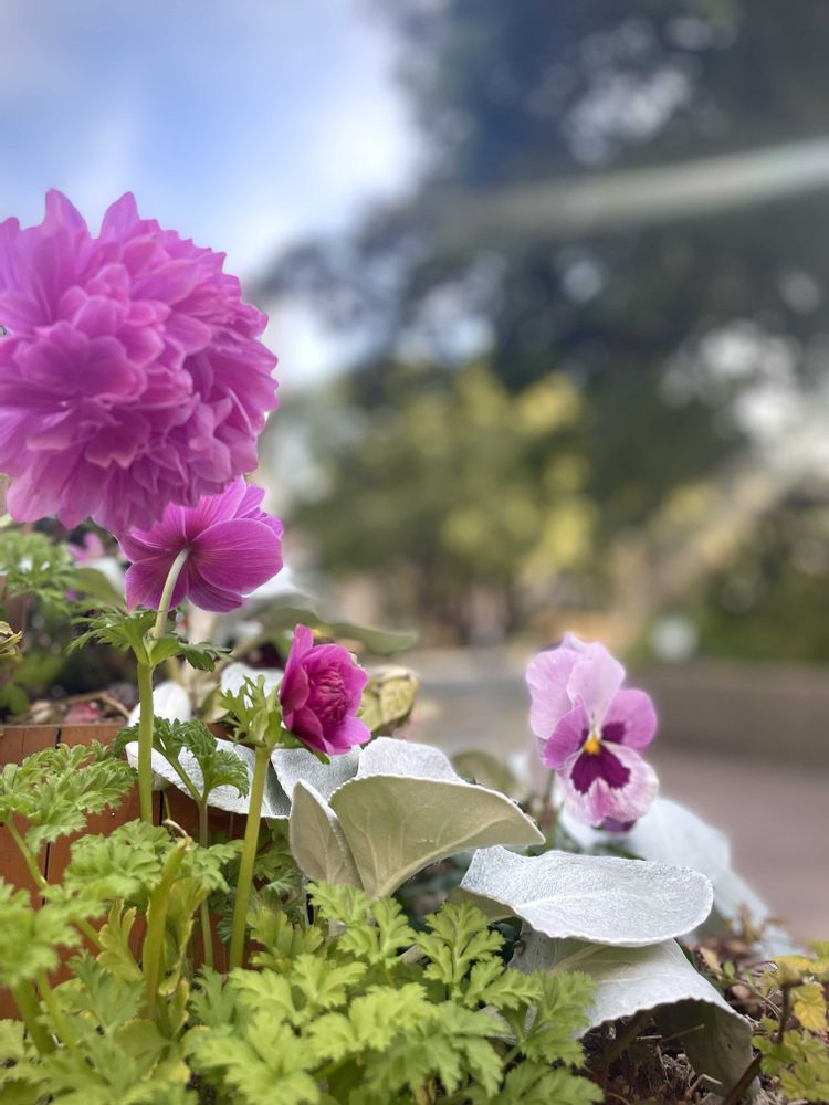 冬の日比谷公園。植物達は息を潜め来るべき春をじっと待っています。そんなグレイッシュな景色の中 ハッとするようなマゼンダ色のラナンキュラスとパンジー。きれい。