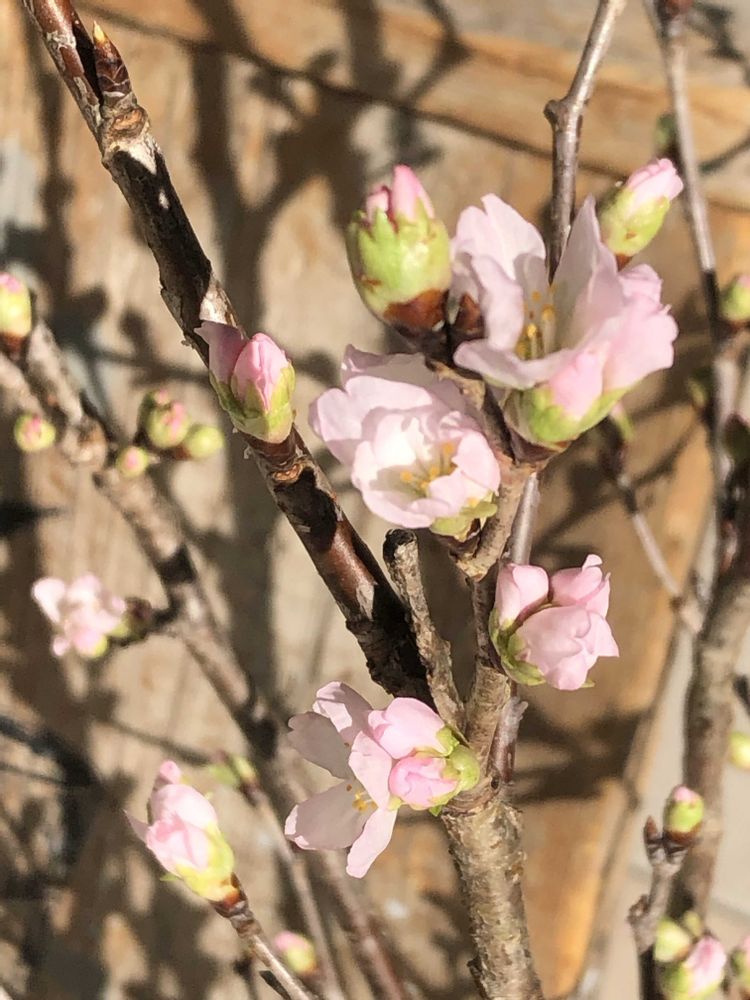 支那桜桃(シナオウトウ)と彼岸桜(ヒガンザクラ)を交配してつくられた寒緋桜の一種で、12月中旬から3月にかけて満開になります。🌞✌️