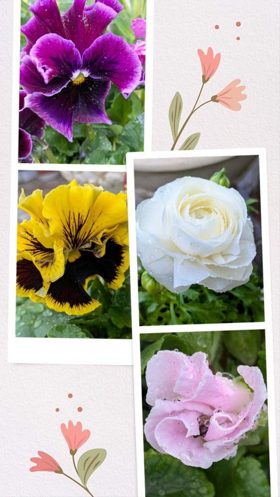 絵になるスミレ、白いラナンキュラス、薔薇咲きジュリアン どのお花も春らしくて素敵ですね💖