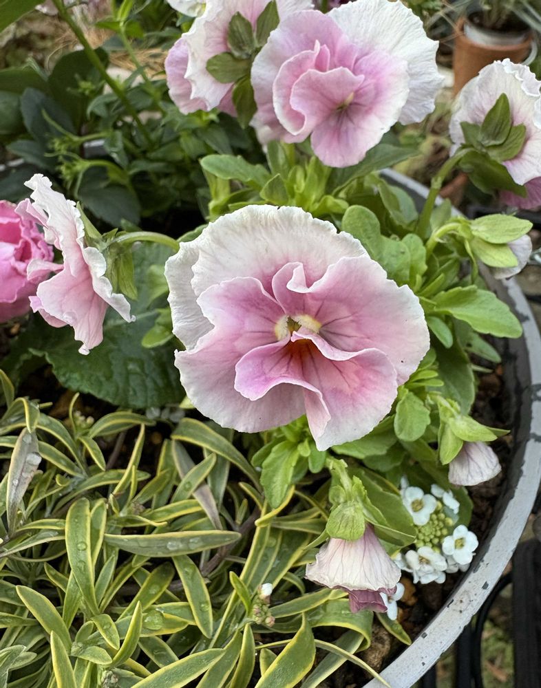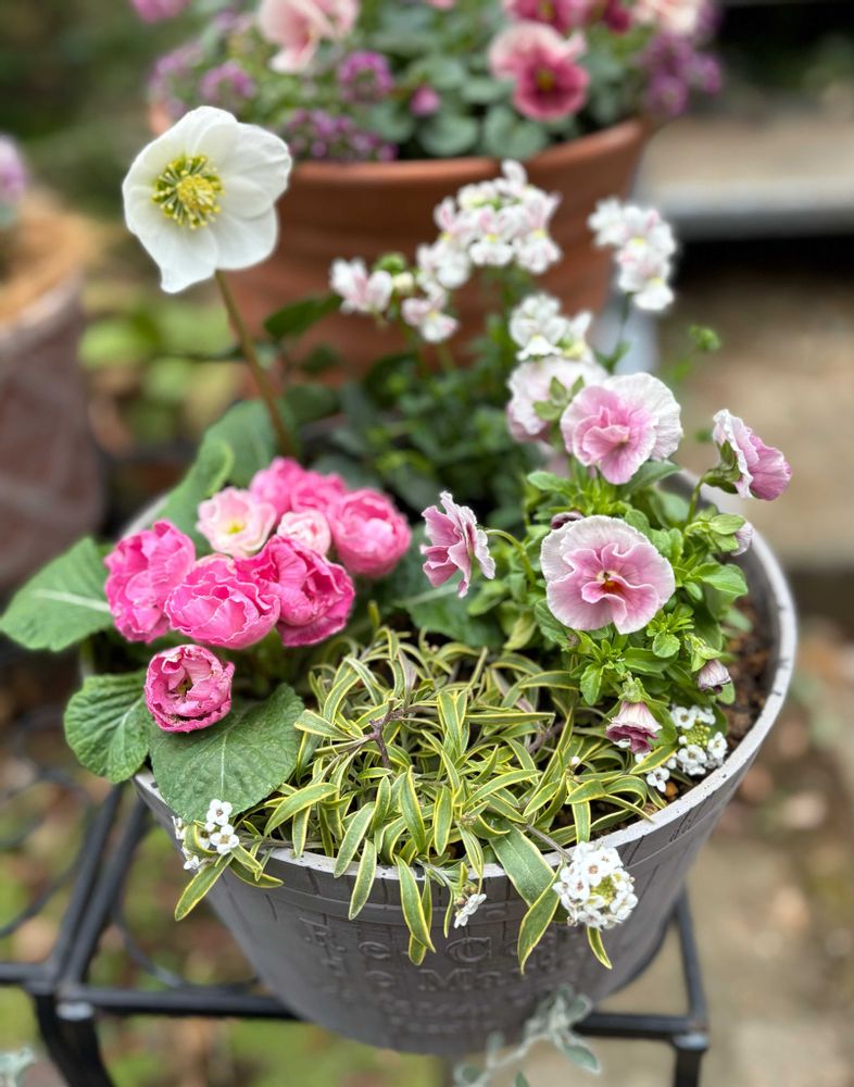 今日の寄せ植えは春らしい優しい色合いが印象的ですね🩷🤍