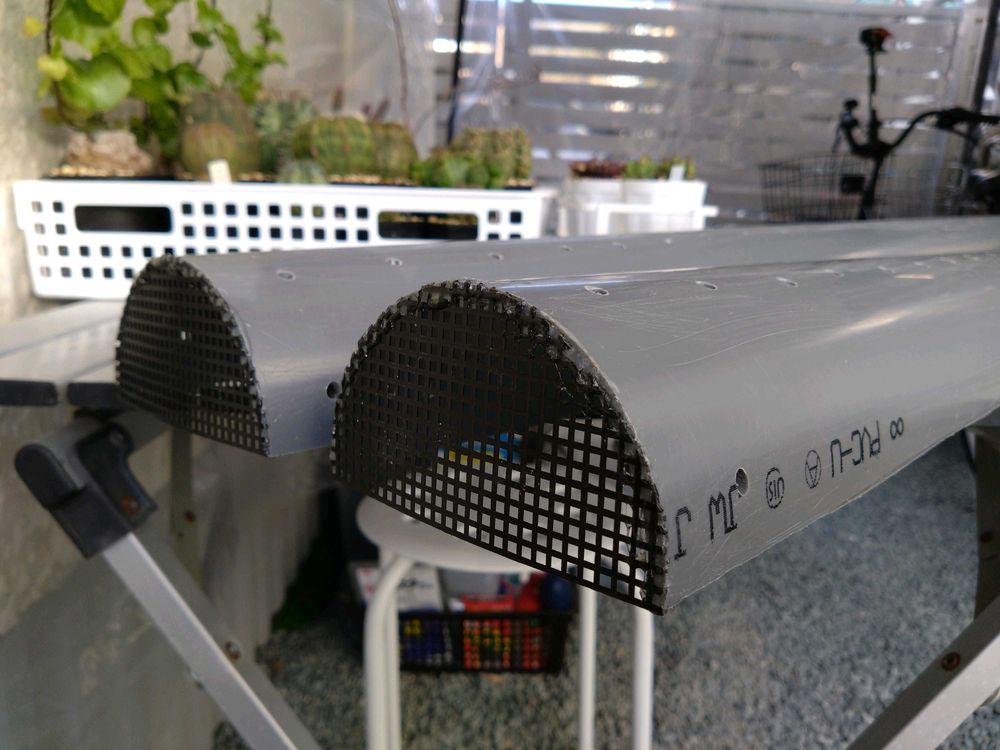 塩ビパイプを使ってのプランター作り、今日は切り口を簡単にヤスリがけしてから両サイドにネットをボンドで貼り付けました!