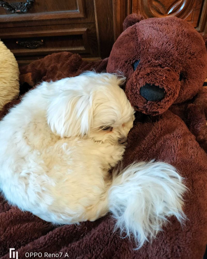 熊さんのお腹で寝るゆずちゃん💕💕💕今も🧸さんのお腹で寝てます💤💤💤カワユイ