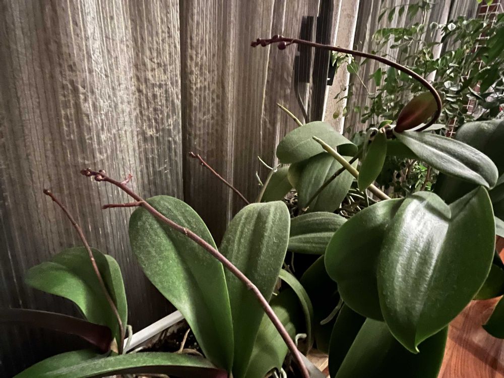 ミニ胡蝶蘭ピンクと胡蝶蘭シロの蕾が順調に伸びてます🥰