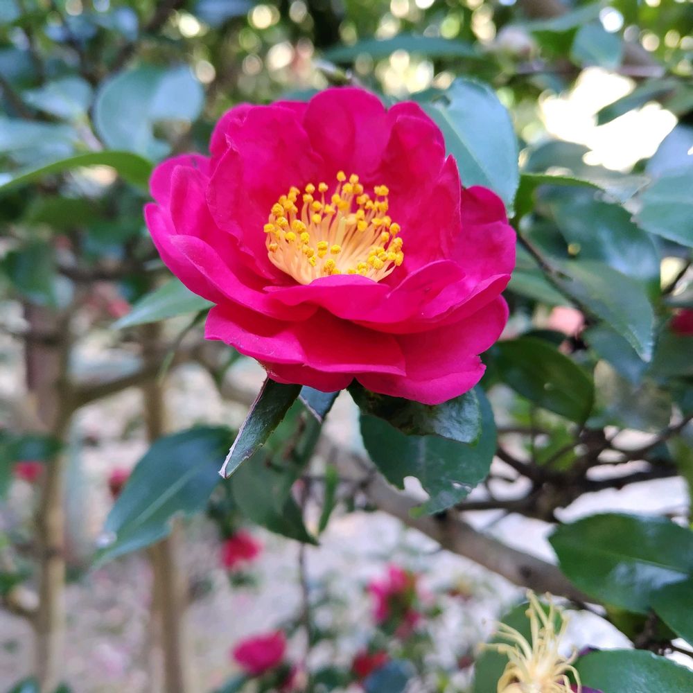 赤いサザンカ。可愛い💖ྀི🧡ྀི💛ྀི💚ྀི💜ྀི🤍ྀི🤎ྀི🖤ྀི💙ྀི(*˘︶˘*).。.:*♡(*˘︶˘*).。.:*♡✨️✨️