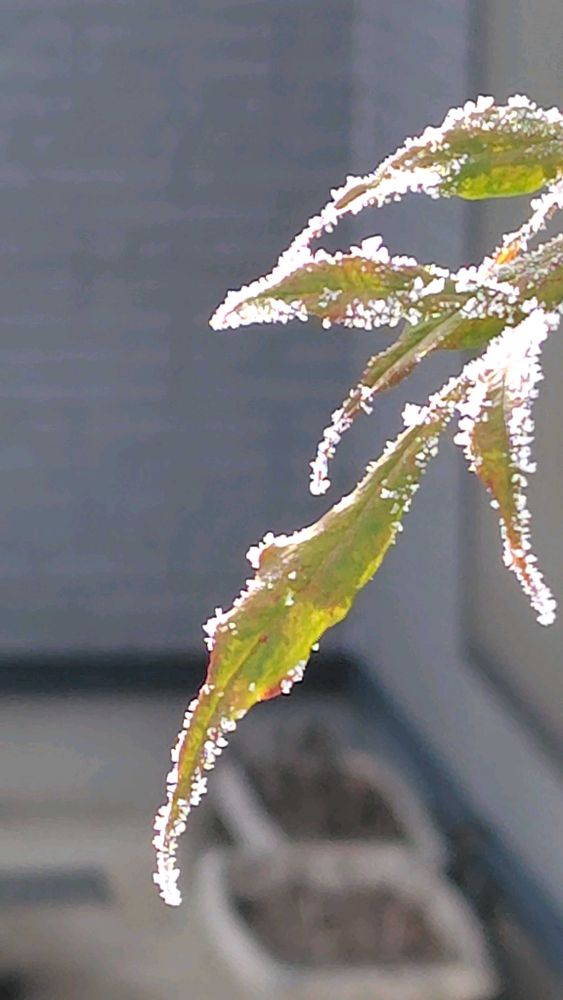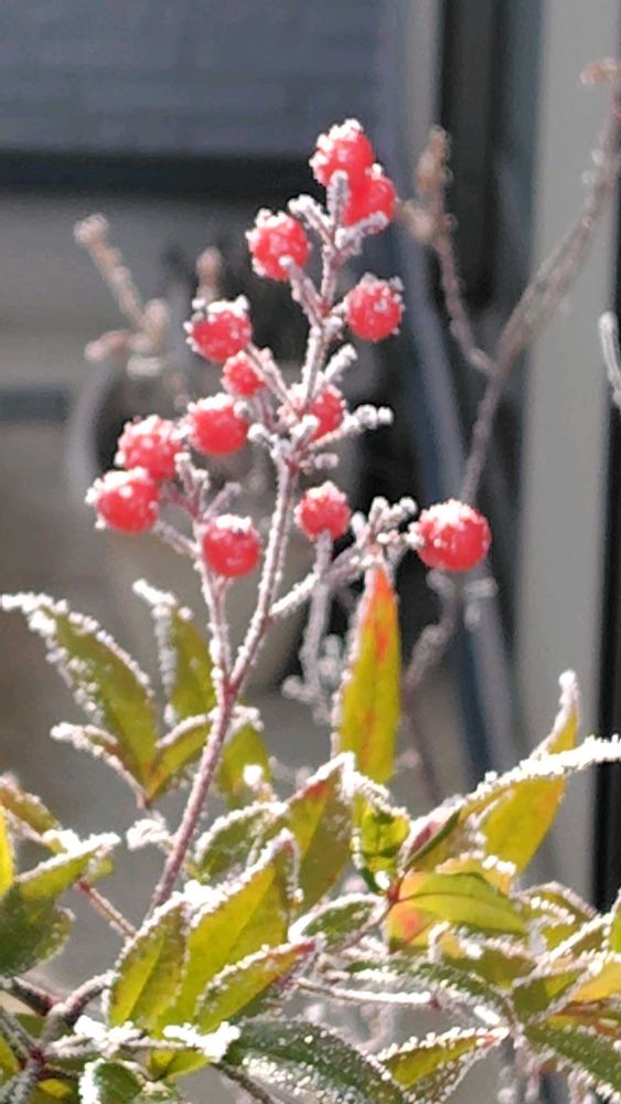 南天も凍えていました