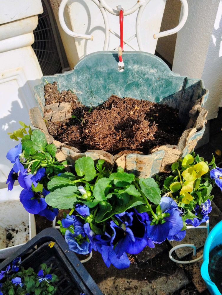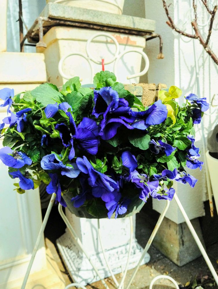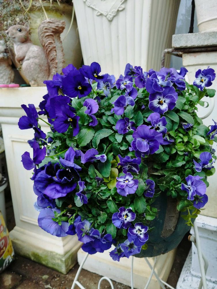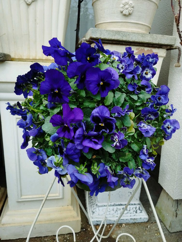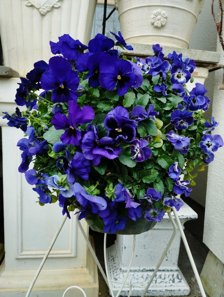 大好きな青色のみでビオラとパンジー全部で15 ポット使用して制作しました。所々にリシマキアの黄色い葉が植えてありますがビオラの葉に隠れて見えないですが、延びて来たら見える予定です🌱