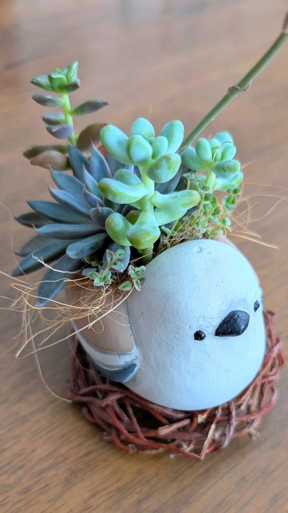 昨年行ったお花屋さんで多肉も植えられた状態で売られていたシマエナガ鉢♪̊̈♪̆̈これはお持ち帰り決定‼️と連れてきました🌟。:*