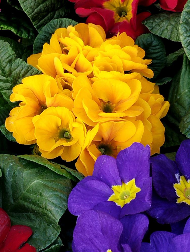 鮮やかなプリムラたちが美しいです。