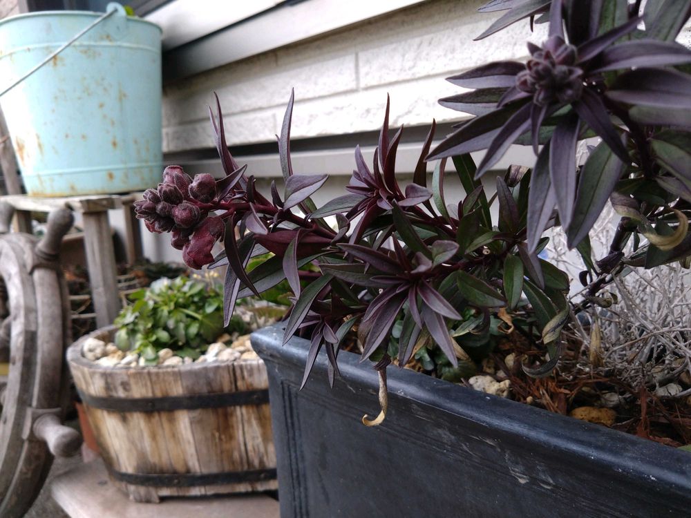 寄植えっコ(🏠️軒下)はイキイキと蕾つきです⚆⚆ ˊ˗