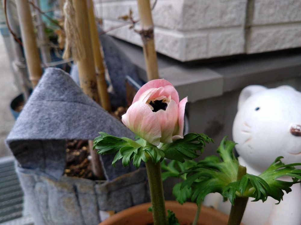 出勤前はまだ氷点下ですがお外へ。キュッと閉じてるのもめんこい🥰