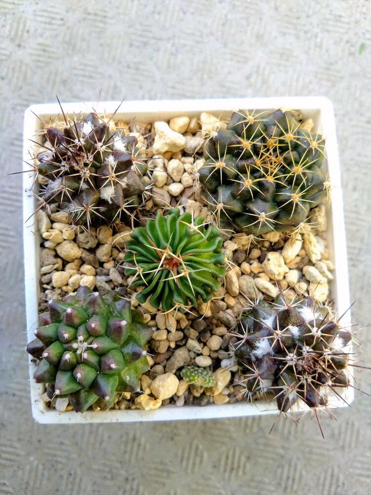 暮にHCに行ったらウチワサボテンの子株(手前小)が落ちてて、貰うついでに買ってたのを昨日植えてみた(*´∀`)♬