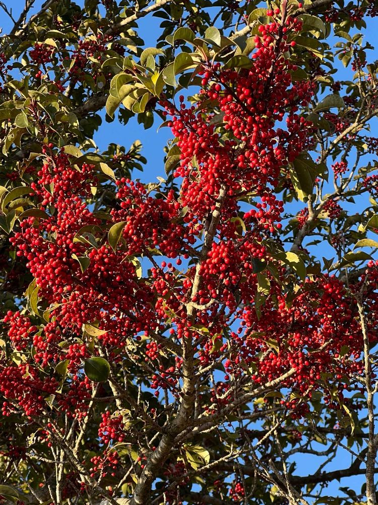縁起が良くて,真っ赤な実が冬中実ってるので,庭木にする家もあります🏠🌲