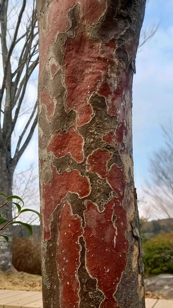 近くの公園をウォーキングしていたら、幹の模様が綺麗な木がありました。👀✨