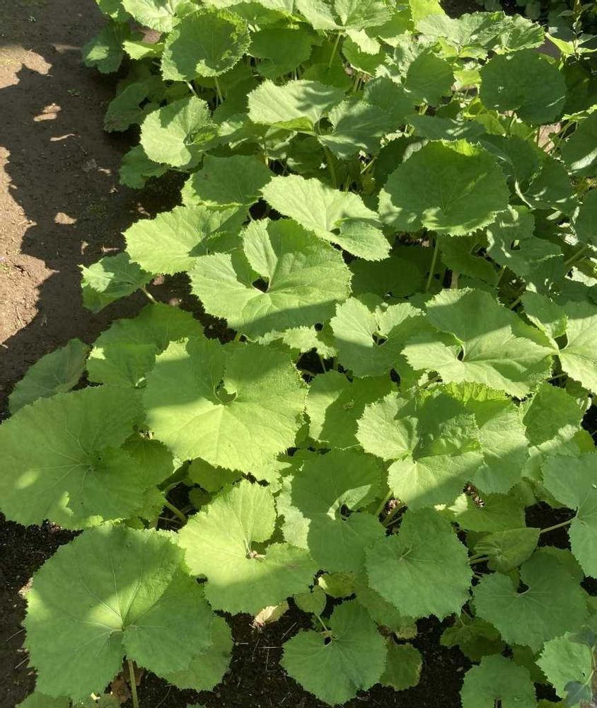 ミニミニ菜園の半日陰で元気な フキたち。 昨年の様子。