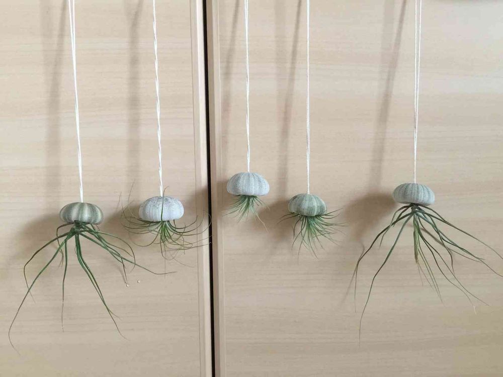 チランジア星人!良いですね。頭?は、ウニの殻ですよね。100均やホームセンターに行くたびに探すんですが、見つかりません。どこで入手できますか?よかったら教えてくださいませませ。