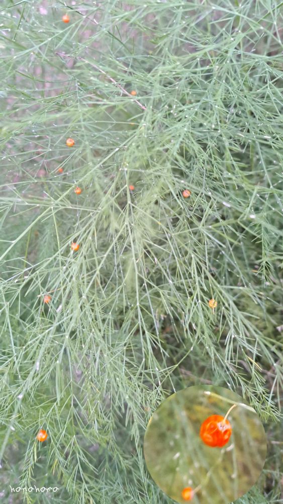このアスパラガスは公園で、食べられるアスパラガスが生ってるのはまだ見たことないです。(;・∀・)