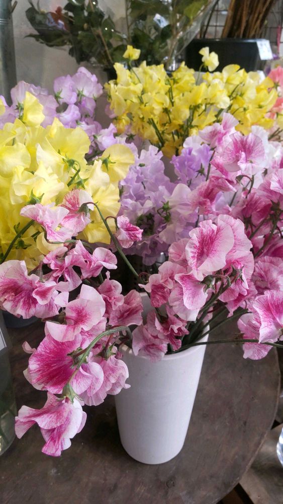 お花屋さんの店先は 今日のお花スイトピーで ほのかな香りがして 春が来たような華やかさです。