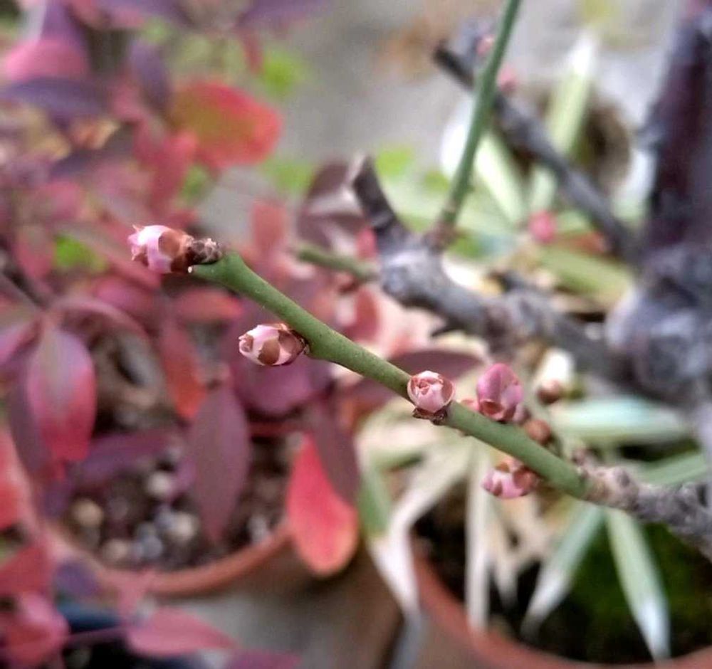盆栽の紅梅の蕾が膨らんできました😊💞毎年ちゃんと咲いてくれるので嬉しいです(^^)💗大寒の昨日は暖かいという割に寒かった😅今日はどうかな🌱
