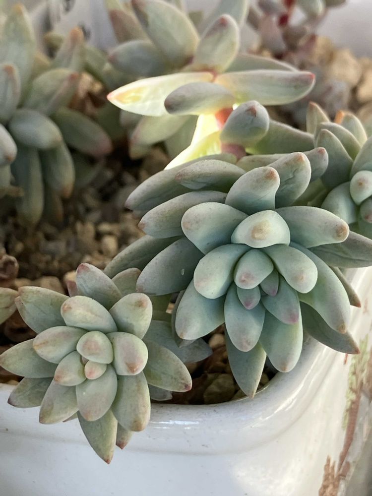 花が咲かない冬には多肉に目が行く白牡丹 姫秀麗 樹氷 ブロンズ姫👸 恋心 恋のしずくなんて みんな可愛い名前がついてて花みたい🌼🌸今更ですが・・😁