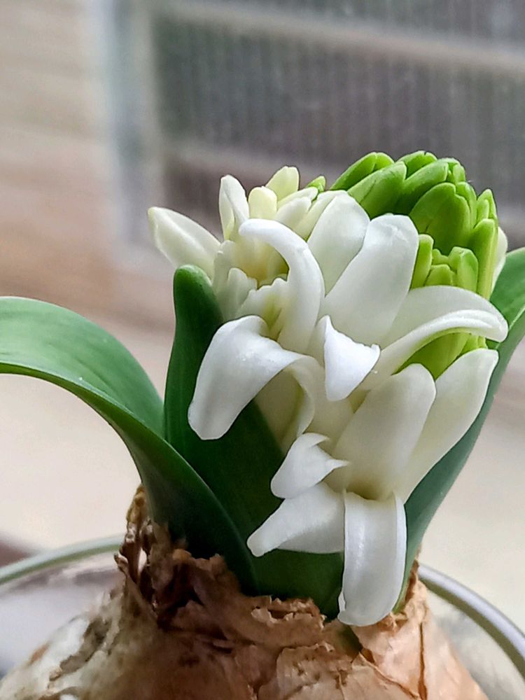 私のヒヤシンス水栽培史上で、最小で咲きはじめました🤭
