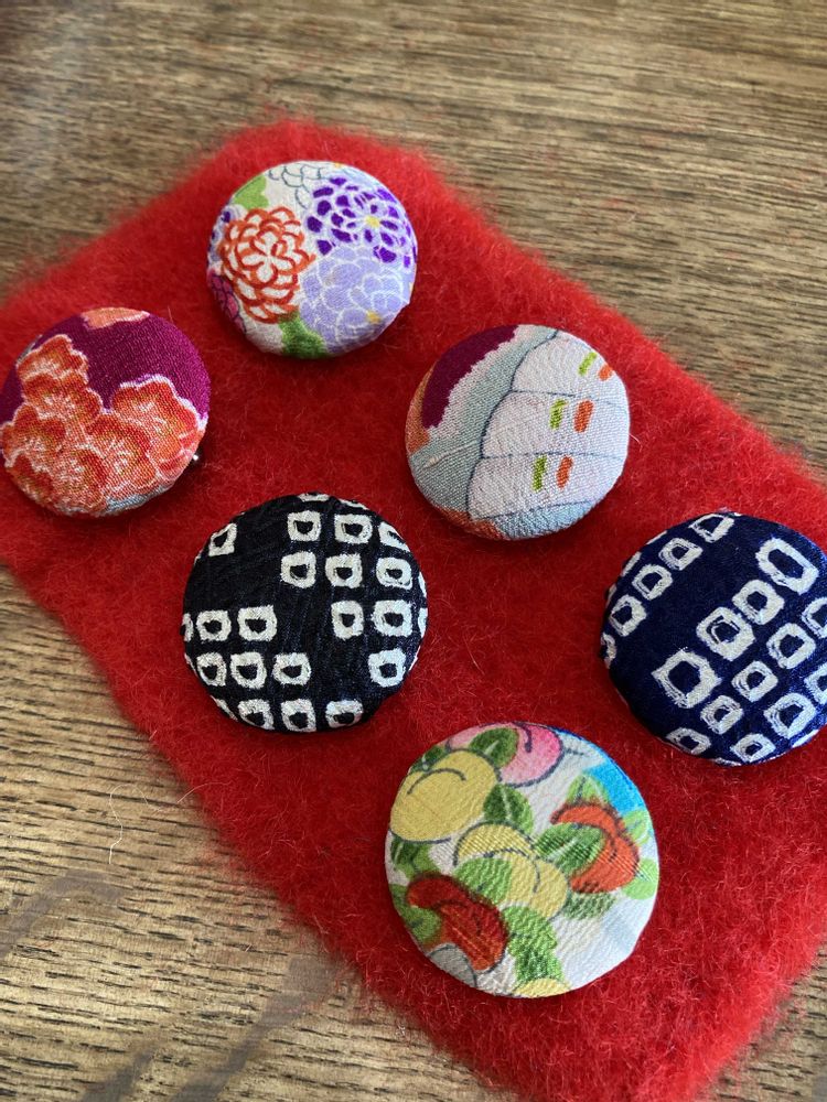写真はくるみボタンのブローチと裂織りのコースターです✨