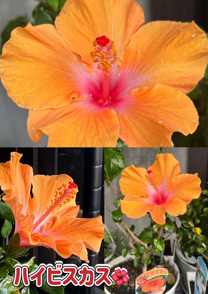 ①久しぶりにオレンジ🧡色のハイビスカスが咲きました。