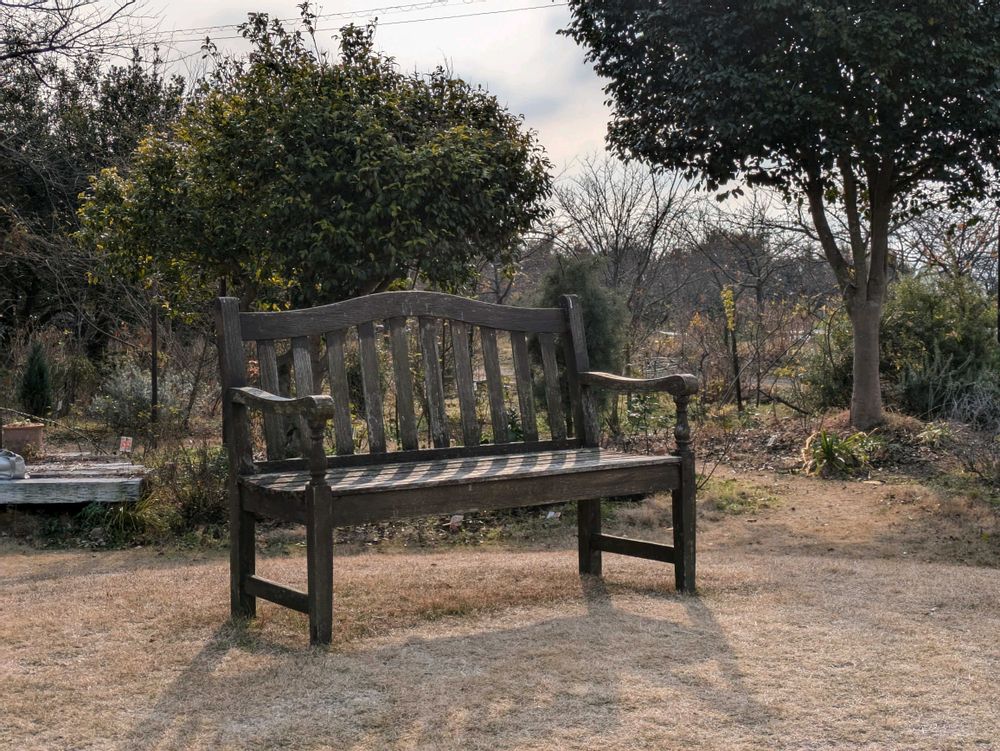②少し山型の上にあるベンチ(周りにバラが咲くと美しいけど 今は少しだけ)