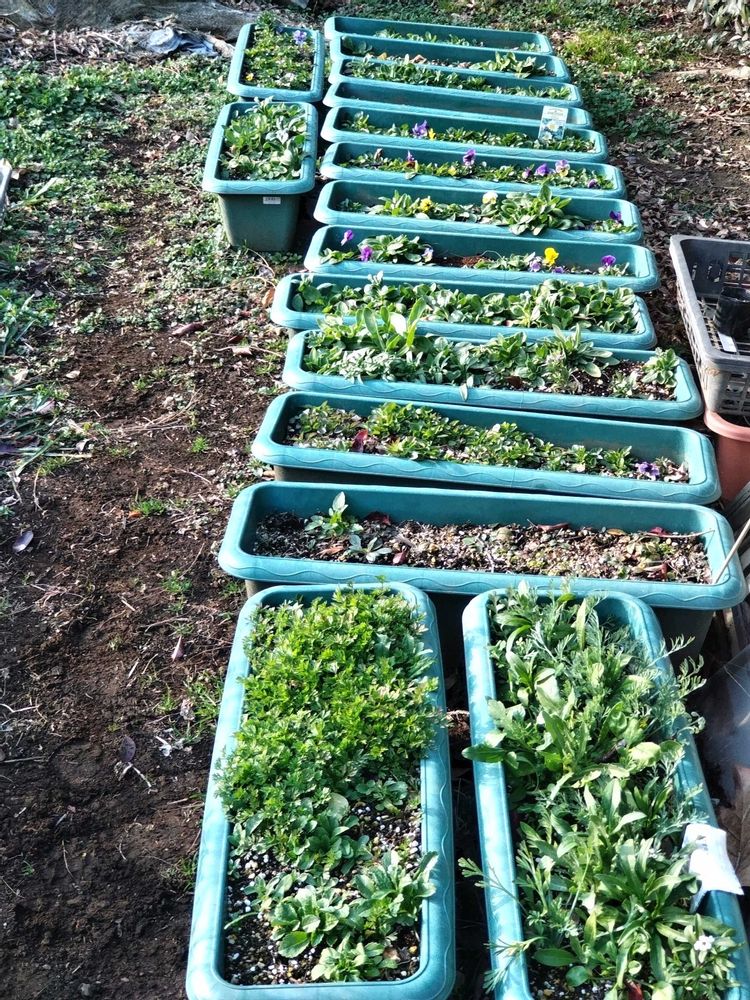種まきからのプランター16個あります。そろそろ早く咲いて欲しい