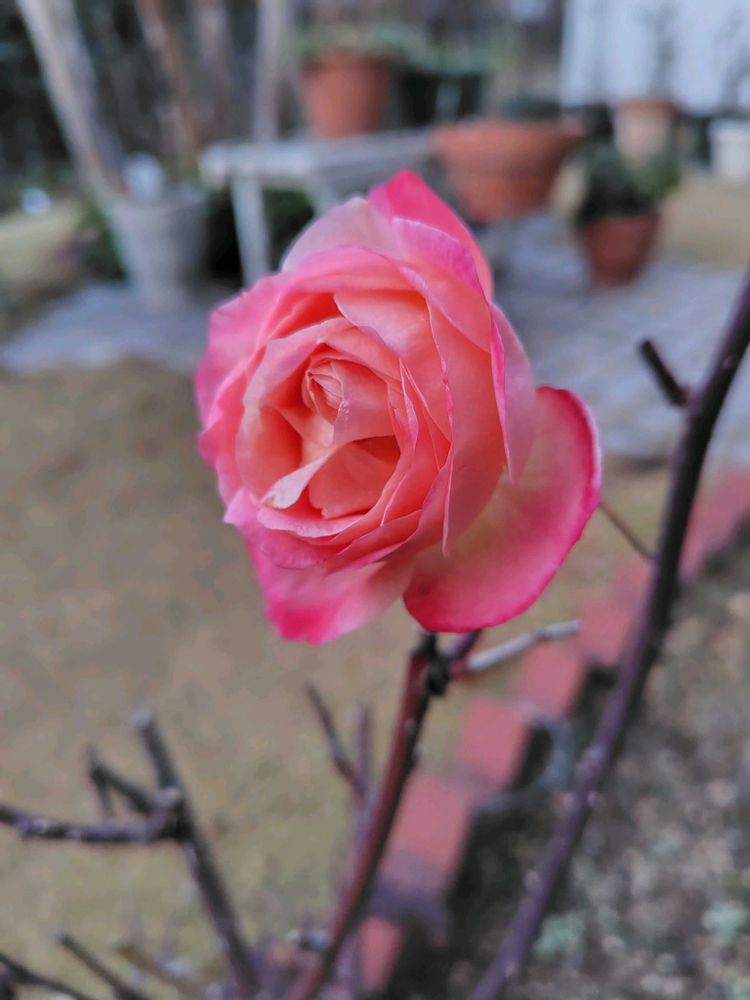 ひと〜つだけ、残しておいたエマちゃんの蕾😊ここのところのの暖かさで開花しました🌹