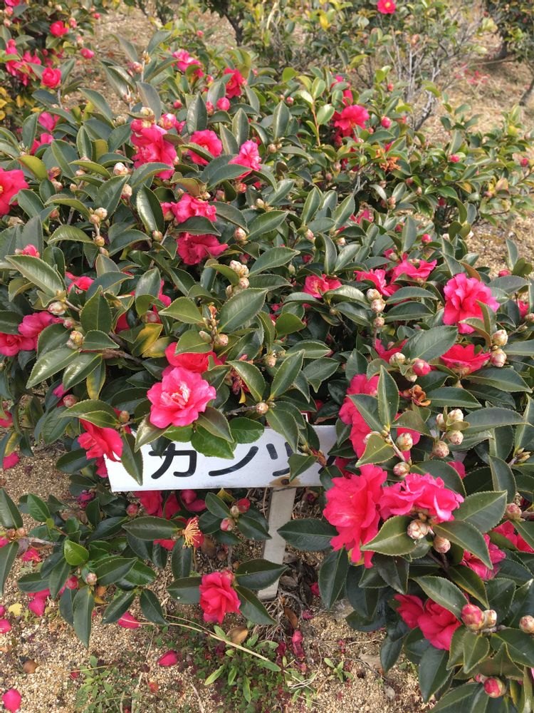 ①昨日行った病院の植栽😄膝丈くらいのサザンカ、と思ったらカンツバキとありました。散り方がサザンカみたいだけど、椿なのかな