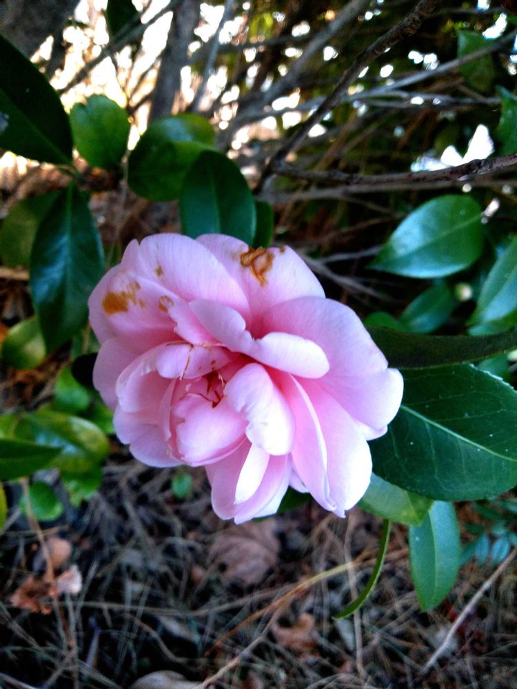 花びらも 頼りない色になっていて 乙女椿の意外に早い開花に たじろいた 朝です。