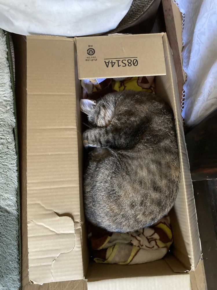 モミジちゃんはこの箱がお気に入り過ぎて寝てしまいました