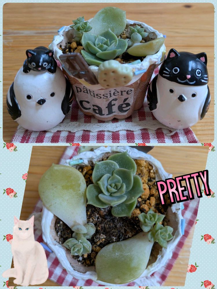 白牡丹が徒長したのでチョンパして、いちごみるくちゃんが贈ってくれたアイスのコーンカップ風ミニ鉢にプスッと挿して、葉っぱも置いてみたらベビーちゃんが生まれてた🌱⋆。👶