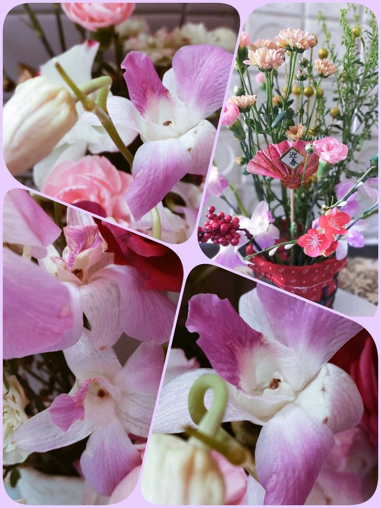 ↗️がその束で、カーネーションと、目立たないけど、デンファレが😅