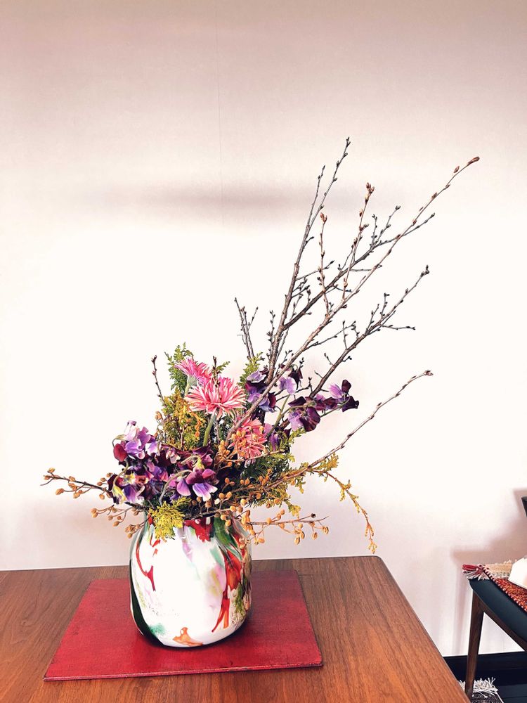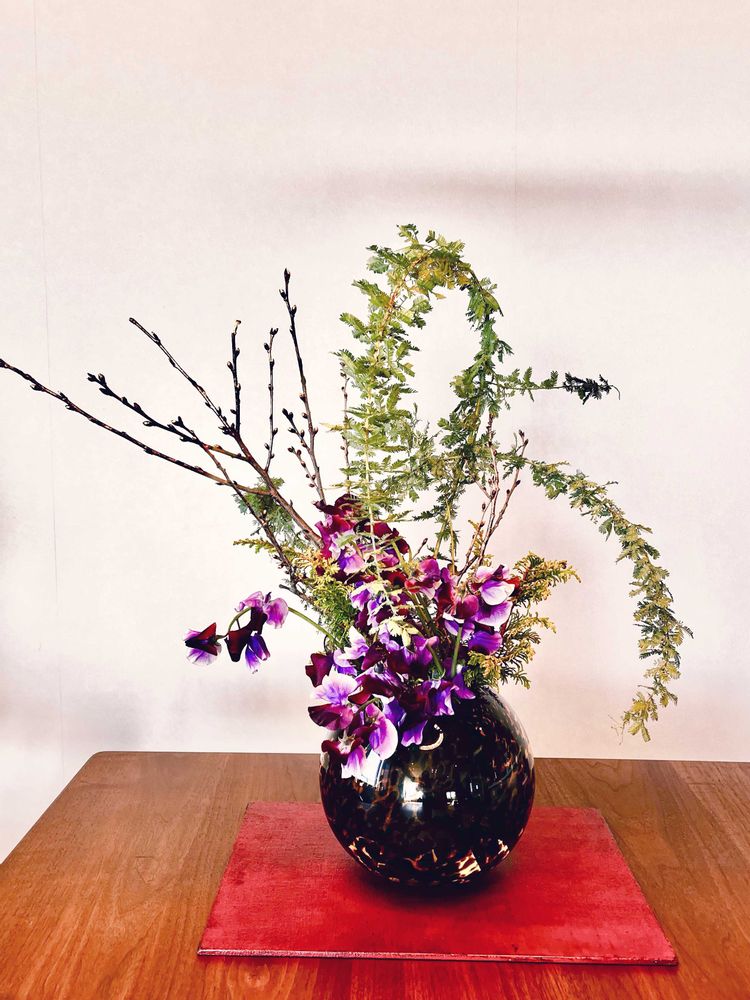 さん、そうなんです!基礎の留めさえ出来れば(着付けと同じ)、素敵と思う形は人それぞれですよね。私も「花留め=技法」だけには厳しいですが、あとはそれぞれの空間造形力ですので、個性豊かな形が楽しめます😊