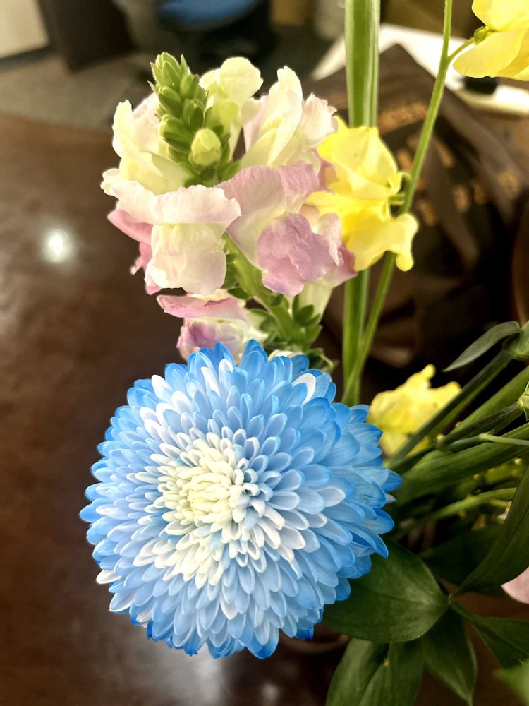 案内のデスクの上に、水色の🩵スプレーマムさんが目に止まりました。