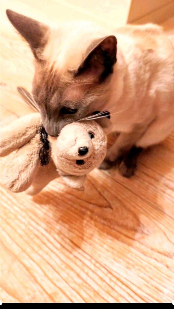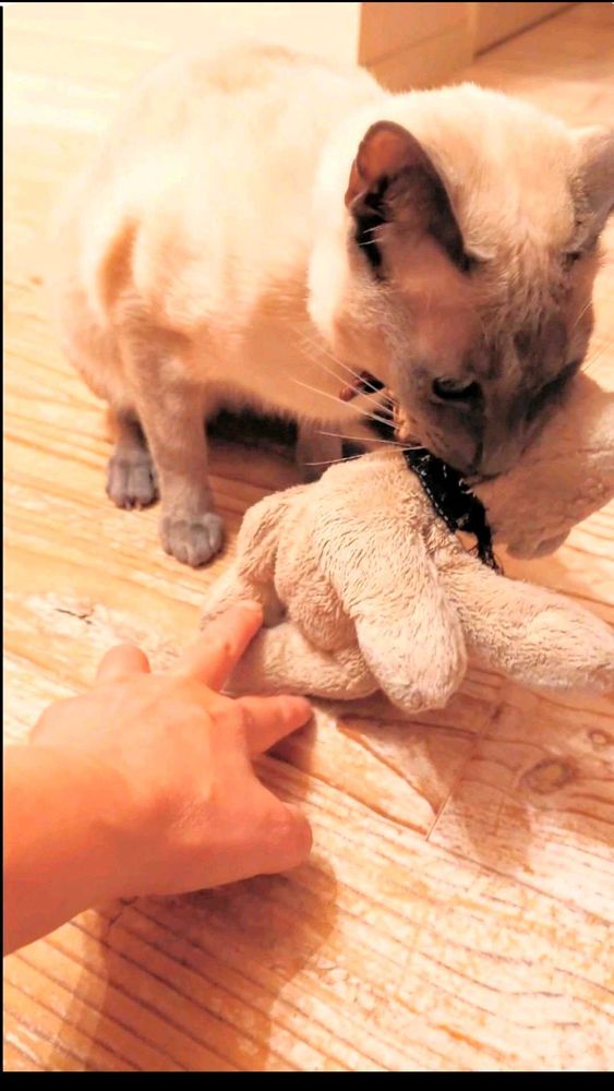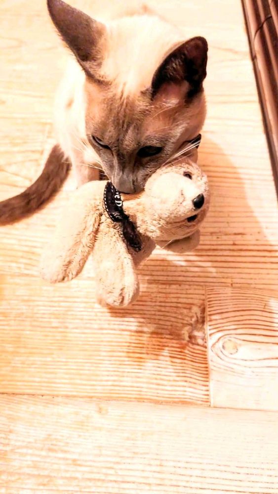 ぬいぐるみ🧸を咥えて遊んでなのかな…