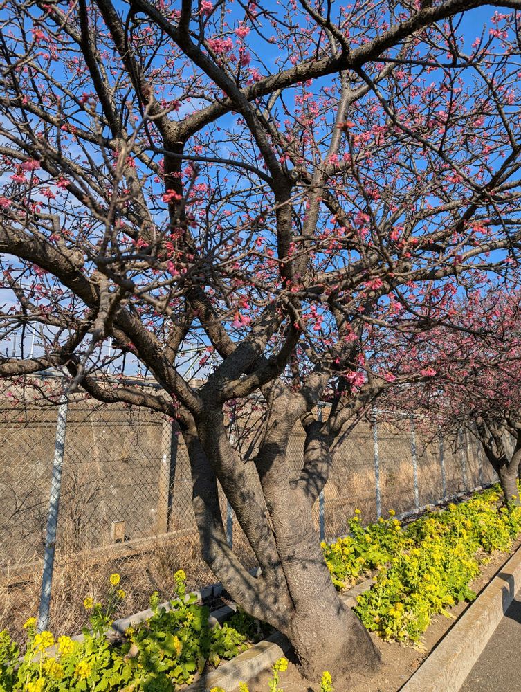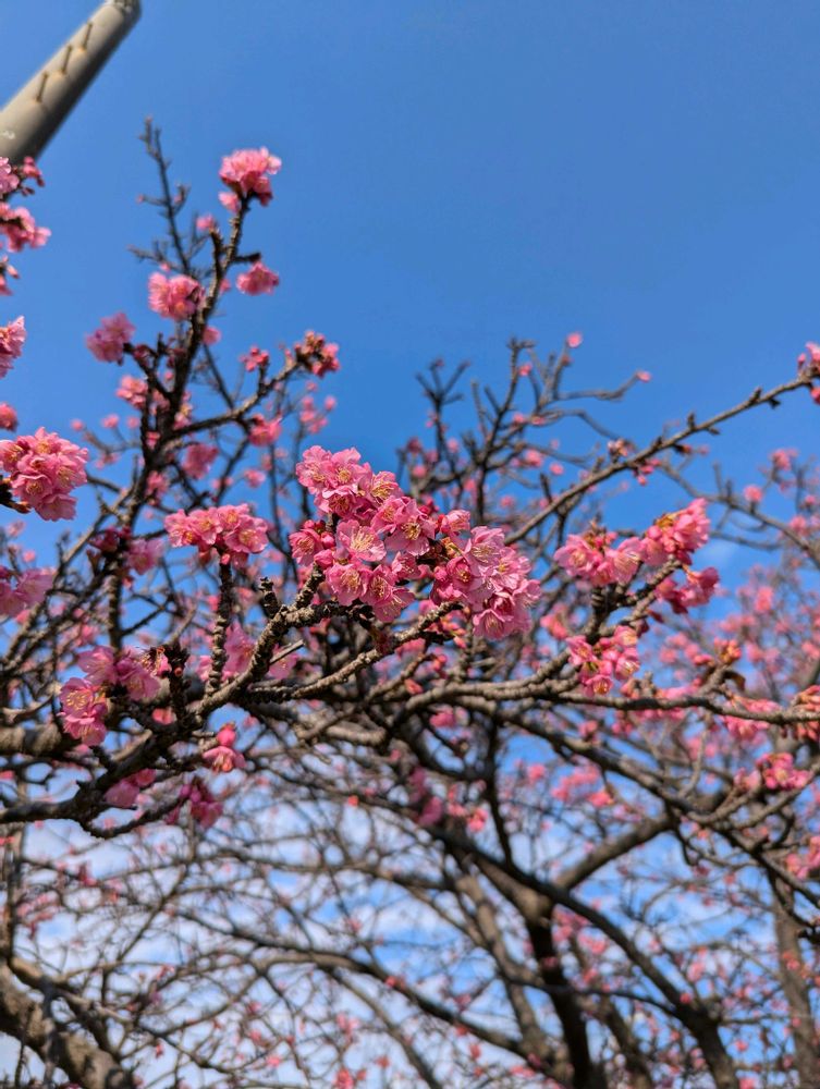 神社4カ所参拝して、産直市場で野菜大量に購入して帰宅しました。道中に咲いてた、河津桜です✨✨✨