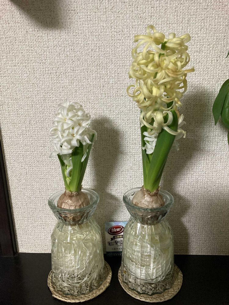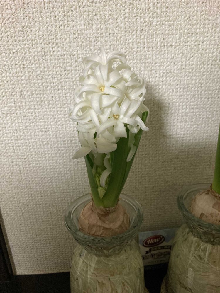 白いヒヤシンス、どちらも開花してくれて嬉しいです✨