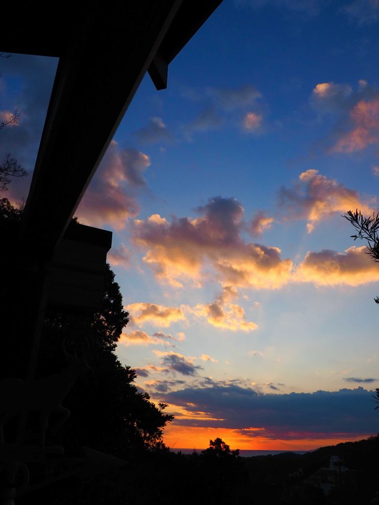 実は我が家は山を背負って東南の海向きで、敷地からは日の入りが見られません。なので④⑤はどちらも朝日です。
