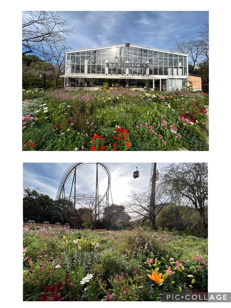 素敵なお花畑とスタバだね❣️🌸