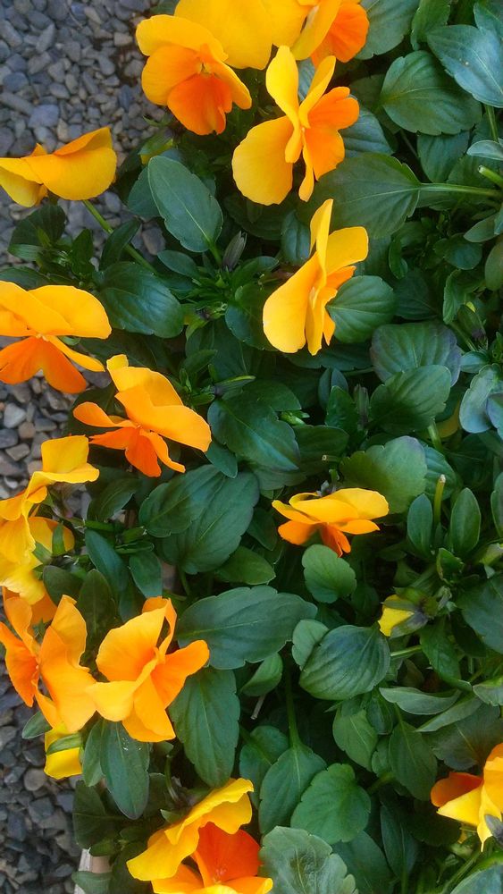 オレンジ色と黄色のビオラ、沢山咲いています。💛