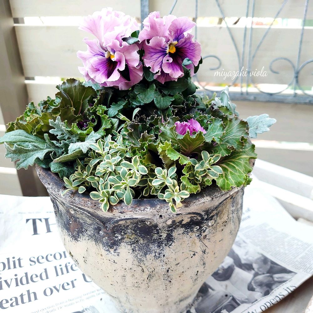 宮崎のパンジービオラのマルシェで購入して待機してた最後の1つで今日は寄せ植えしました。こちらはパンジー。存在感があって可愛い色😌