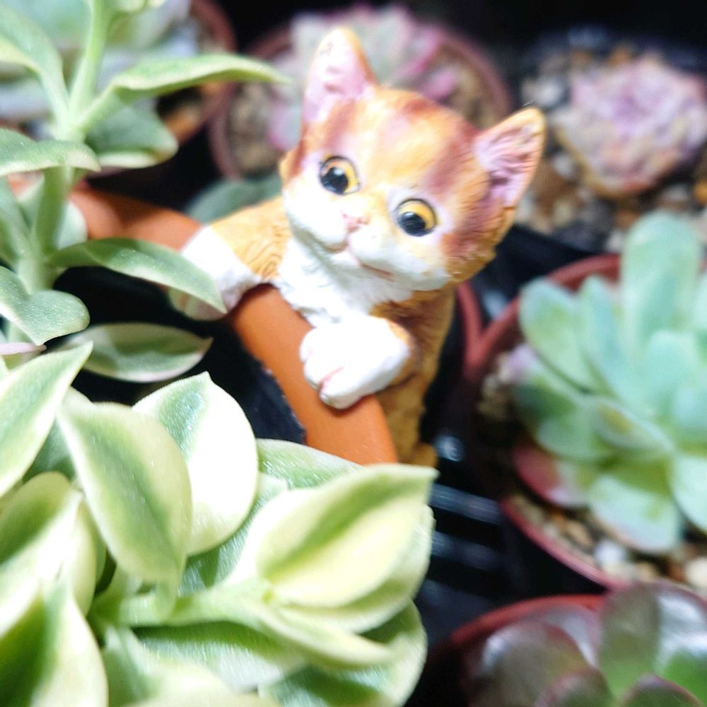 ①100均「鉢のフチ猫」さん🐈