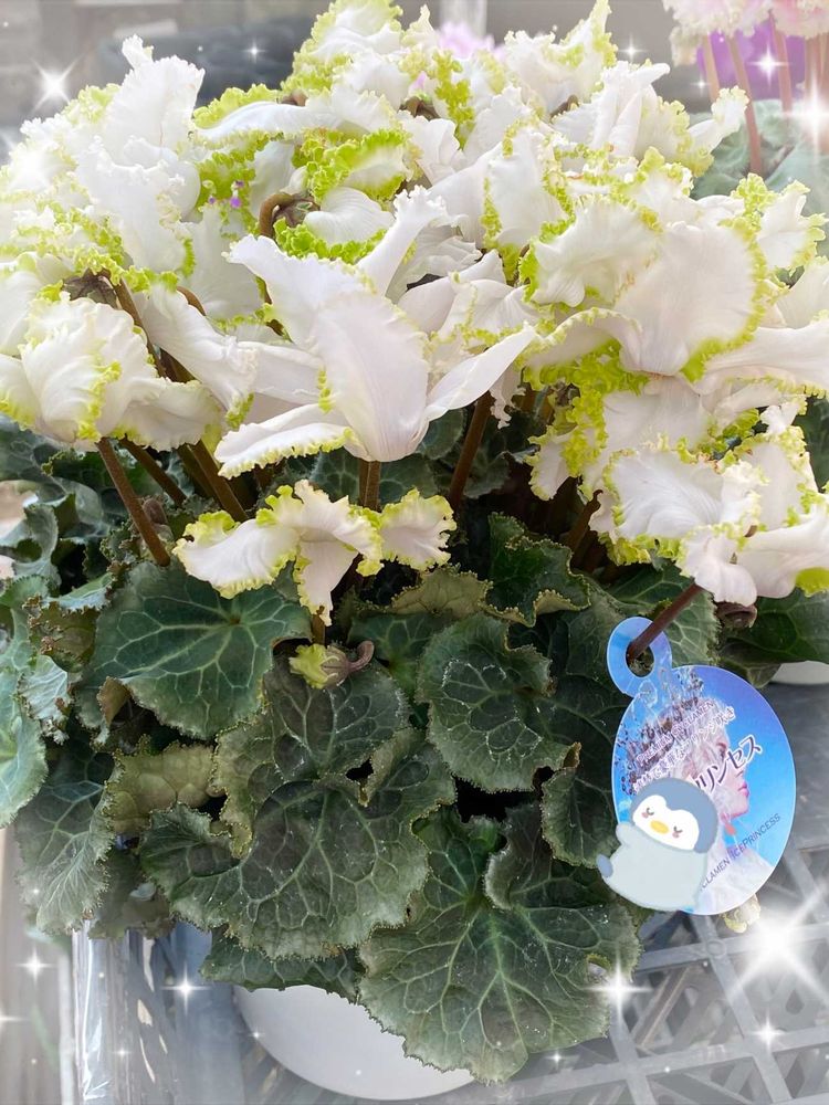 ③シクラメンも半額になってました😉その中で珍しいフリンジにグリーンの色がついた 「アイスプリンセス」というシクラメンも初見でした🤍💚
