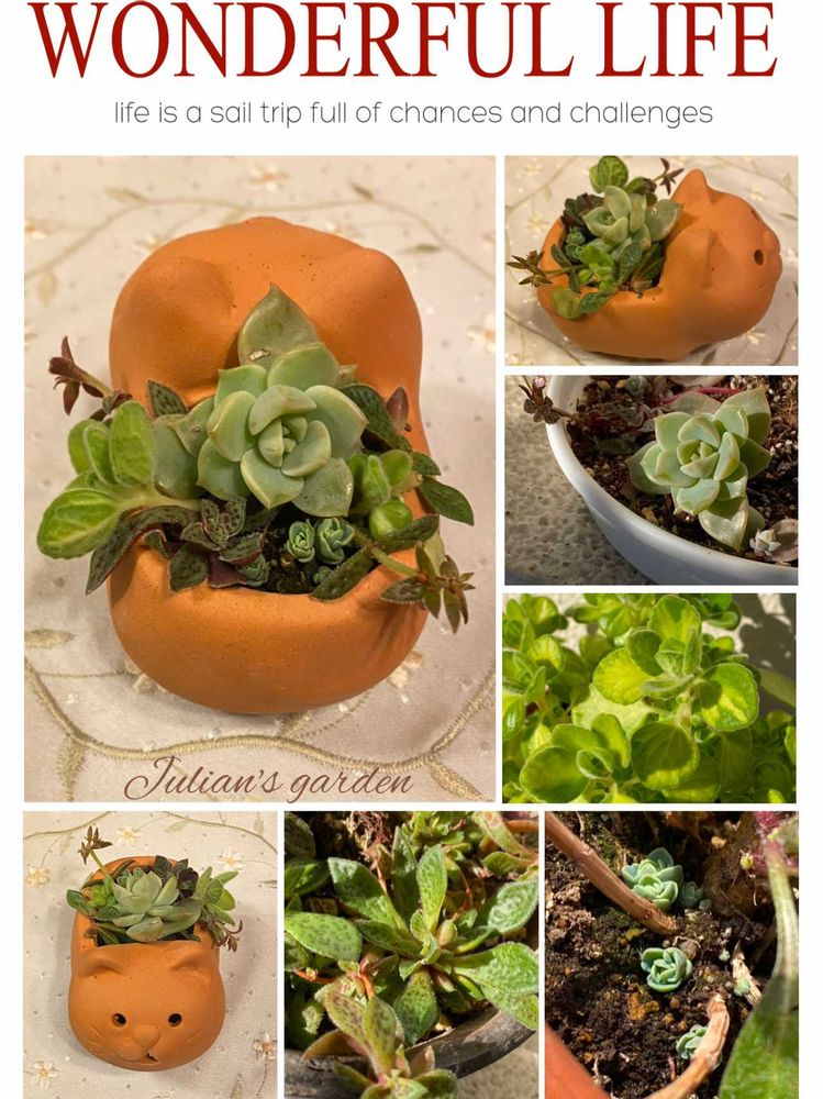 猫ちゃん鉢に、多肉がとてもマッチしていると思います❗素敵です😊✌💞✨