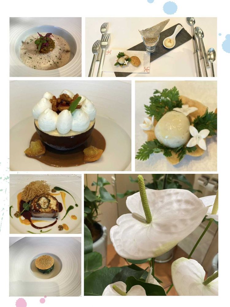 フレンチのアミューズで出てきたものに白いエディブルフラワーのペンタスが乗ってました🤍💚